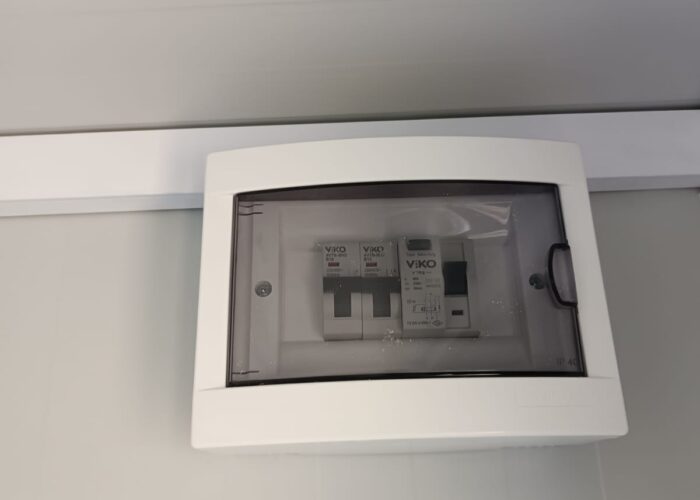 ( przewody, maskownice, skrzynka bezpieczników, bezpieczniki z wył. różnicowym, 2x gniazda, włącznik oświetlenia, 2x lampa wew., 1x lampa zew. )