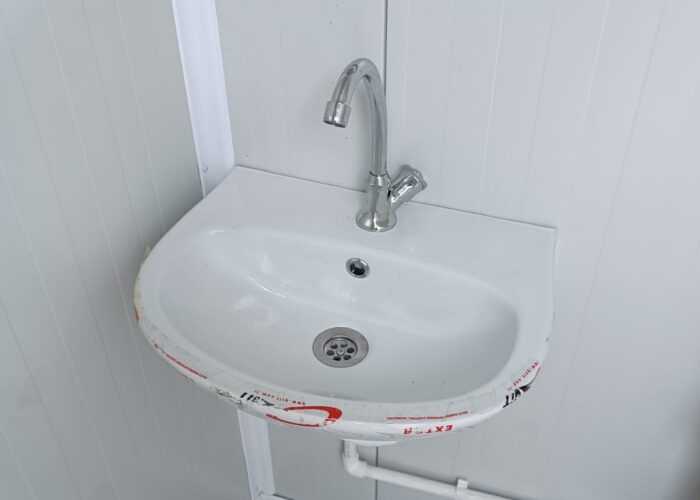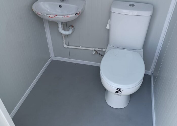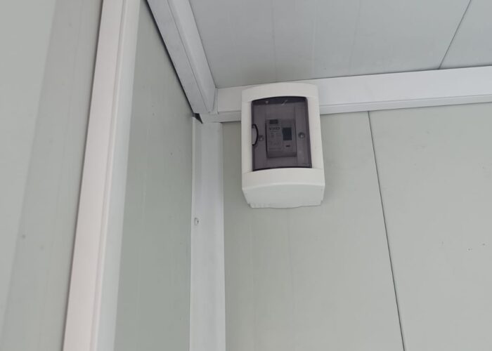 Kabinki sanitarne dodatkowo są wyposażone w instalacje elektryczną oraz wykładzinę PCV.