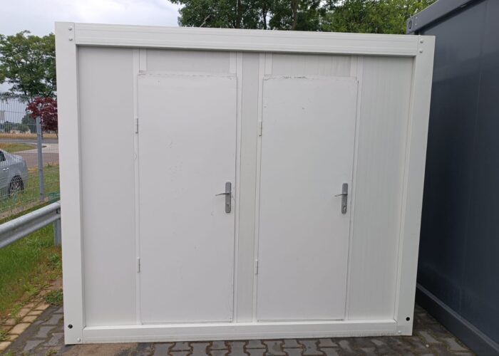 Kontener jest przedzielony na pół ścianką działową, posiada dwa oddzielne wejścia z zewnątrz.