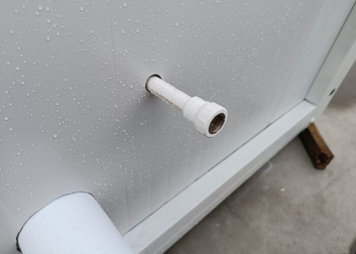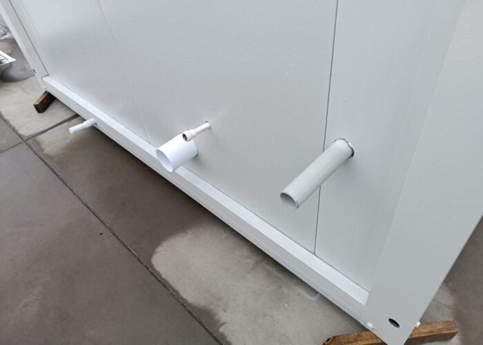 Kontenery wykonane są z płyt warstwowych o gr. 50mm wypełnionych pianą PUR, a konstrukcję tworzą profile stalowe, ocynkowane. Wszystko w technologii skręcanej.