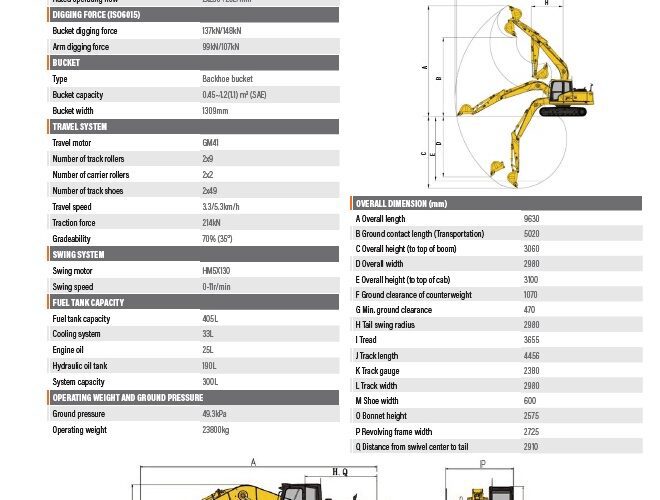 | Maksymalna wysokość kopania (mm) | 10060 | |