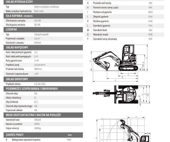 | Maksymalna wysokość kopania (mm) | 4910 |