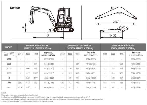 | Maksymalna głębokość kopania (mm) | 3075 |