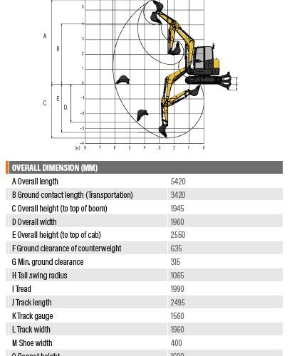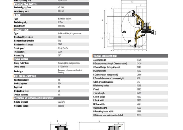 | Maksymalna wysokość kopania (mm) | 5685 |